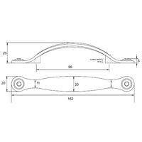 Specifications: Material: Die-Cast Zinc Overall Length: 162mm Centre to Centre: 96mm Projection: 25mm Width: 20mm