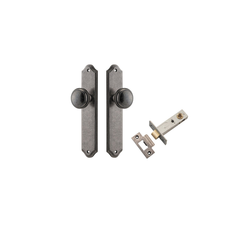 Kit Content: 2 x Levers / Knobs on Backplates of your choice 1 x Tube Latch Split Cam Backset 60mm 1 x Face Plate 1 x Striker Plate 15 x Screws 1 x Standard Spindle 2 x Sprung Spindles 2 x Tie Bolts 1 x Dust Box 1 x Drill Template 1 x Instruction Manual Material: Solid Brass
