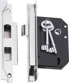 Solid brass face and striker plates. Reversible tongues. Keyed alike or random keyed. 13mm rebate. 44mm or 57mm backsets.
