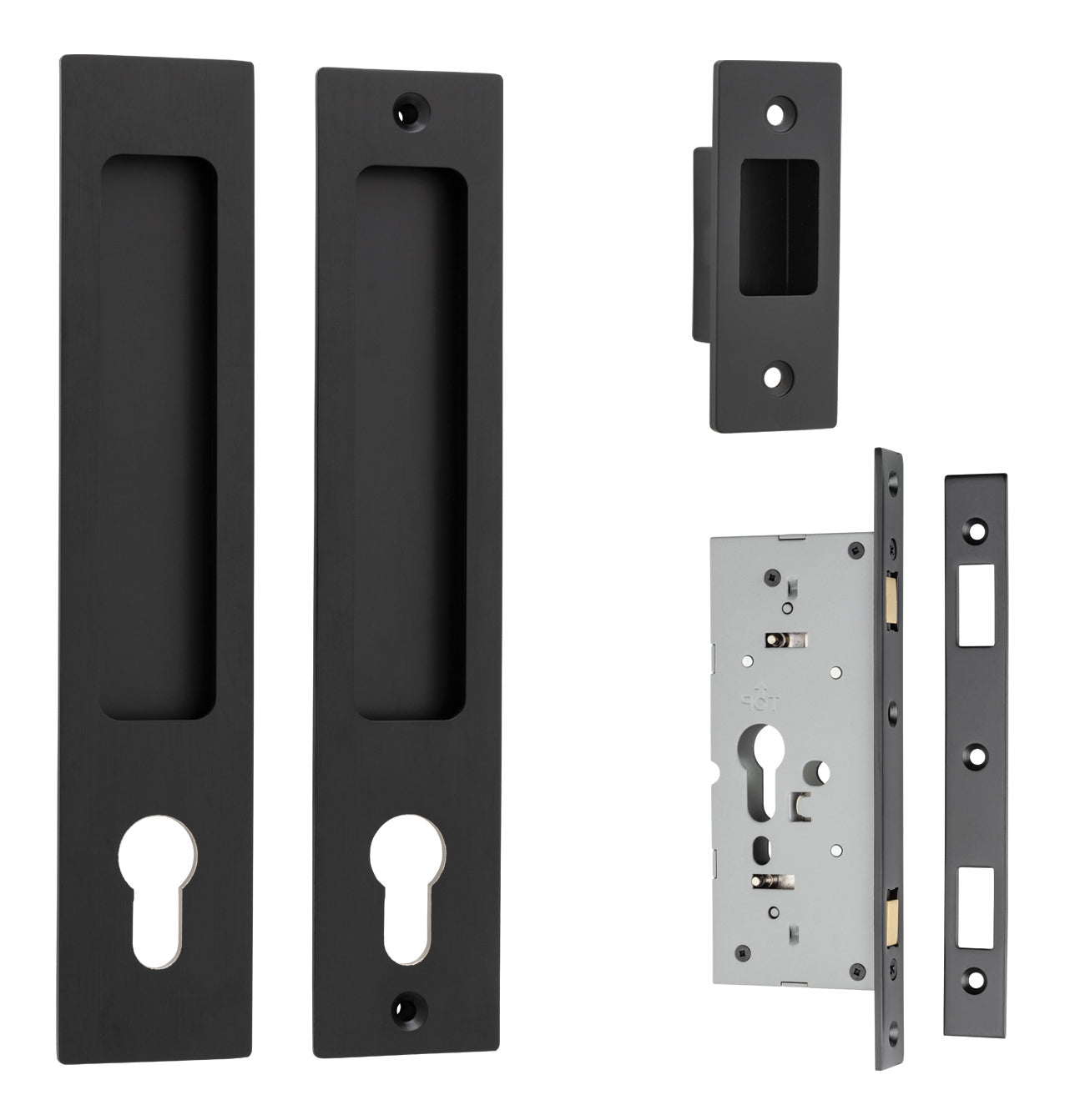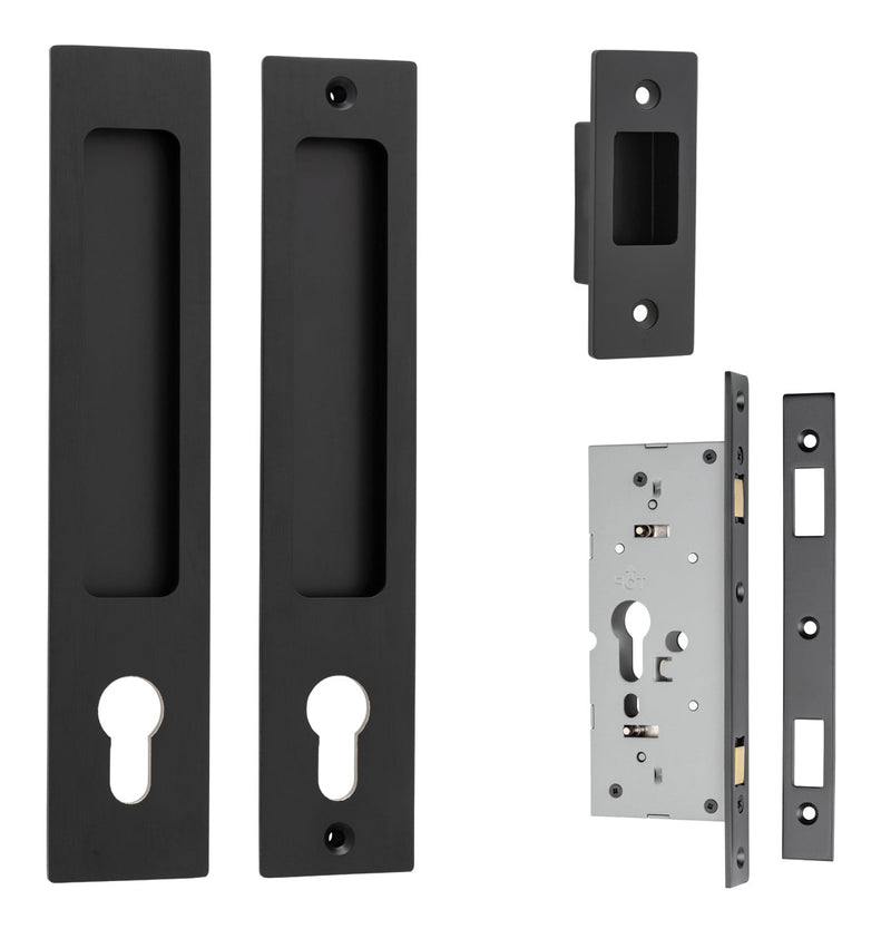 Notes: This product is supplied with: 2 x Rectangular Sliding Door Pulls 1 x Edge Pull Face Plate 2 x Dust Boxes 1 x Euro Sliding Mortice Lock 45mm Backset 1 x Euro Cylinder 45mm (3 pin, Key/Key) 1 x Face Plate 1 x Striker Plate 16 x Screws 1 x Drill Template 1 x Instruction Manual 1 x Cleaning Cloth Minimum door thickness required 38mm. Maximum door thickness 45mm. If maximum door thickness exceeds 45mm, please refer to longer Iver cylinder options as an add on purchase. Sliding pulls are available in non-locking passage, euro lock, privacy and round privacy sets.
