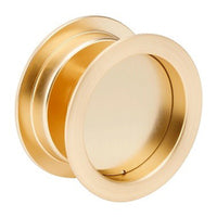 Description: Zanda Round Cavity Slider Passage Set 5326.GN Cavity Slider Passage Set has a sleek and minimalist design for a comfortable and secure grip to push and pull the doors effortlessly. Commonly used on sliding doors that don't need privacy locks. Cavity Slider Passage Set Function - both the inside and the exterior are always free, and they are designed for use on sliding doors since they must slide past one another or return into a slot. Features: Flush turn design. Allows door to slide right back into cavity. Template and instructions included for fast and easy installation. Each kit includes an edge pull which enables a user to pull the door from a cavity with ease