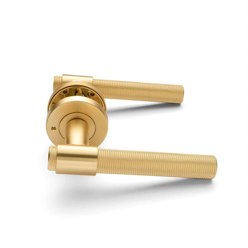 Satin Brass Knurled Privacy Door Handle - Rosedale
