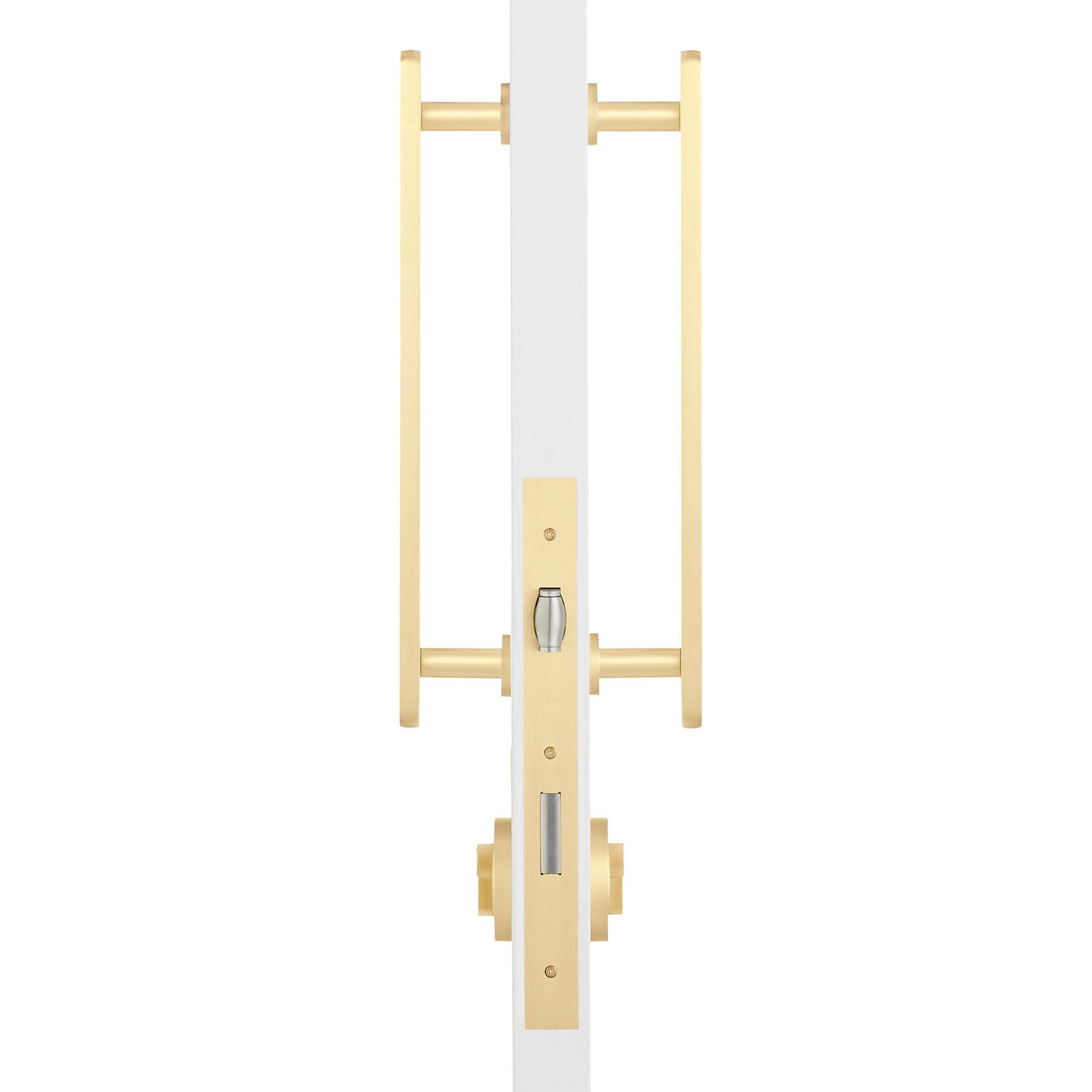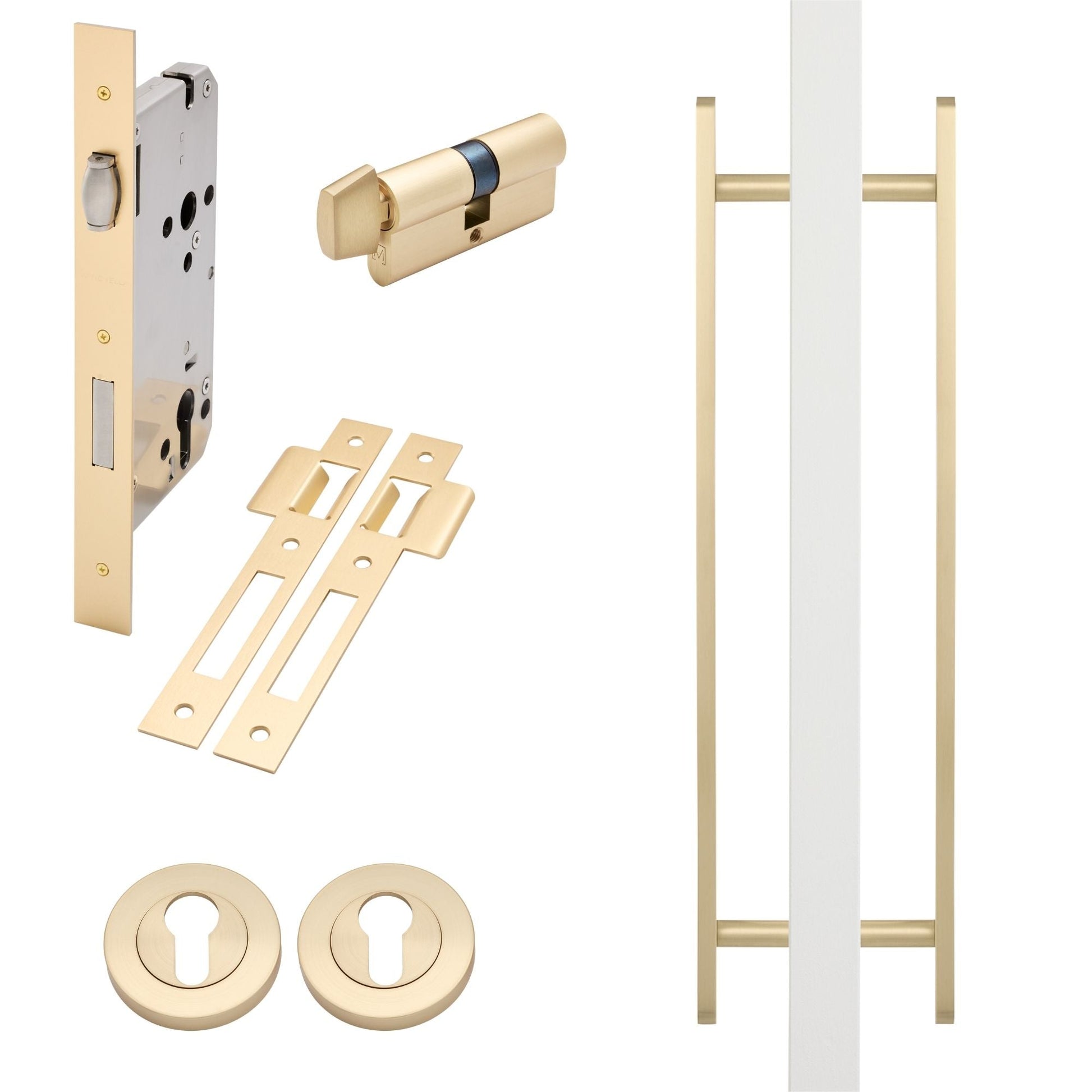 Our Roller Lock Kit with Imogen pull combines all the parts needed to create a stunning and functional entry door. The solid brass back-to-back entry pull is an aesthetic feature for any entry door, with sizes to suit doors both large and small.