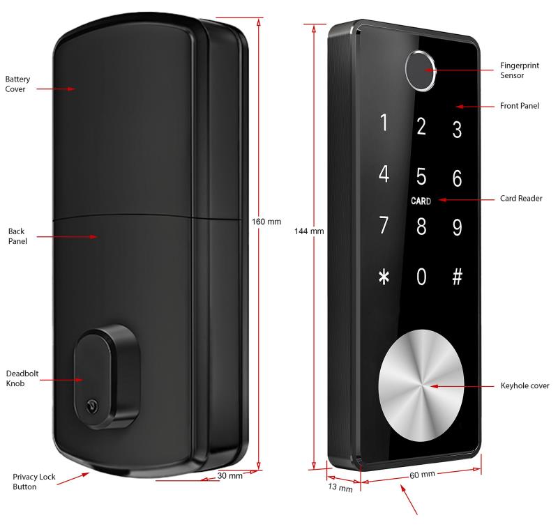 Touch Pad, Finger Print, WIFI (Gateway Device not Included), App, RFID Card, Key