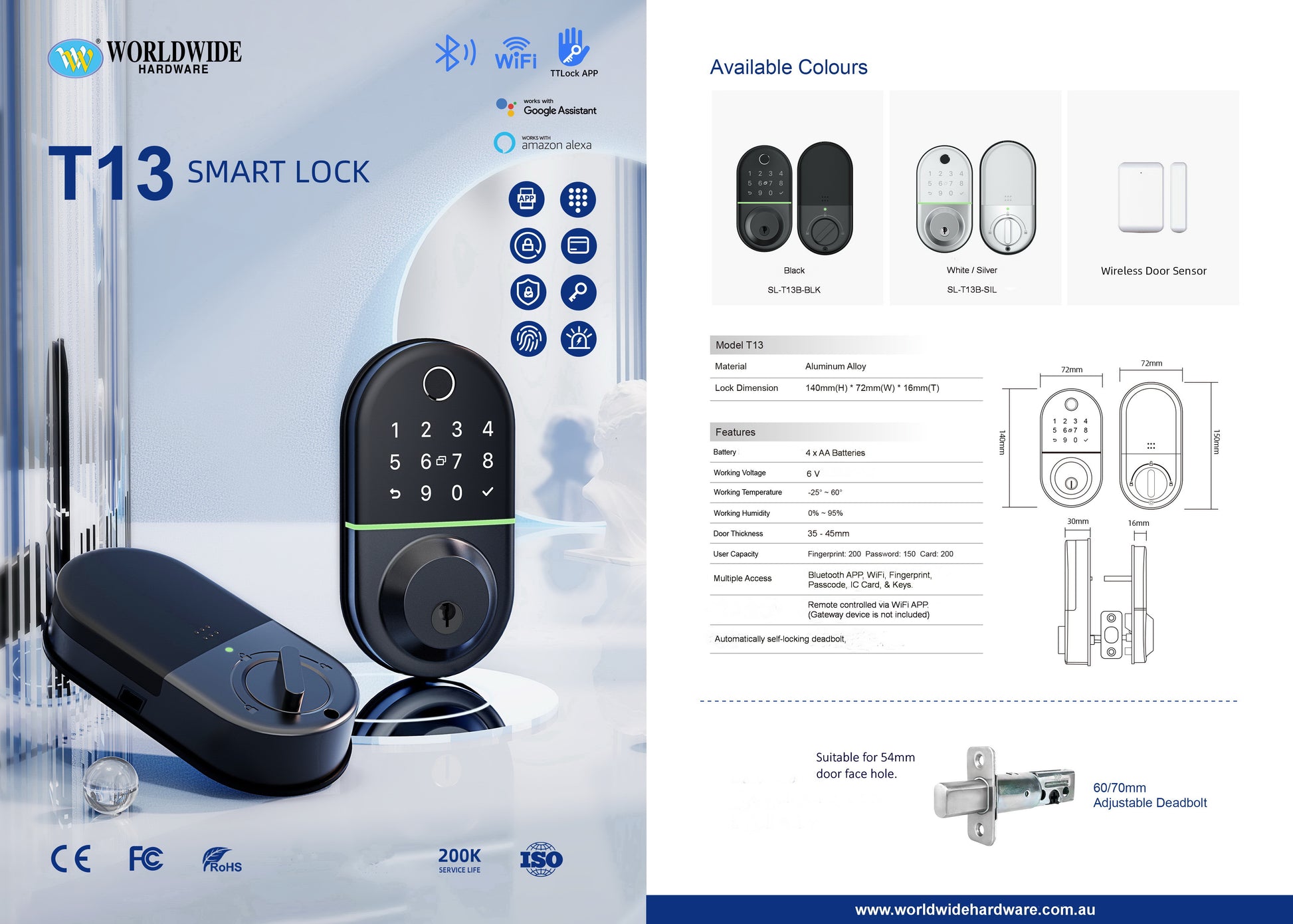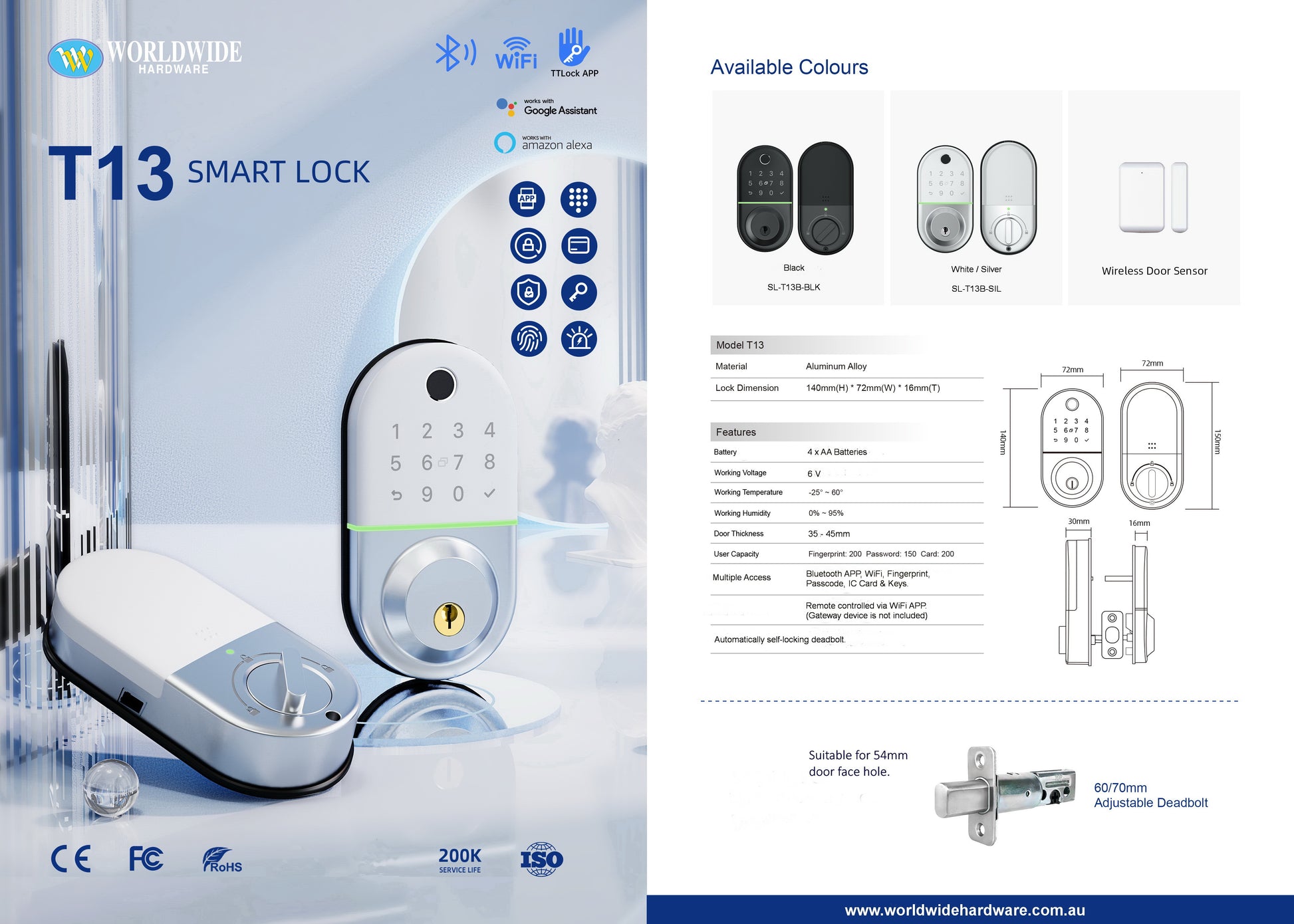 Touch Pad , Finger Print, WIFI (Gateway Device not Included), App, RFID Card, Key