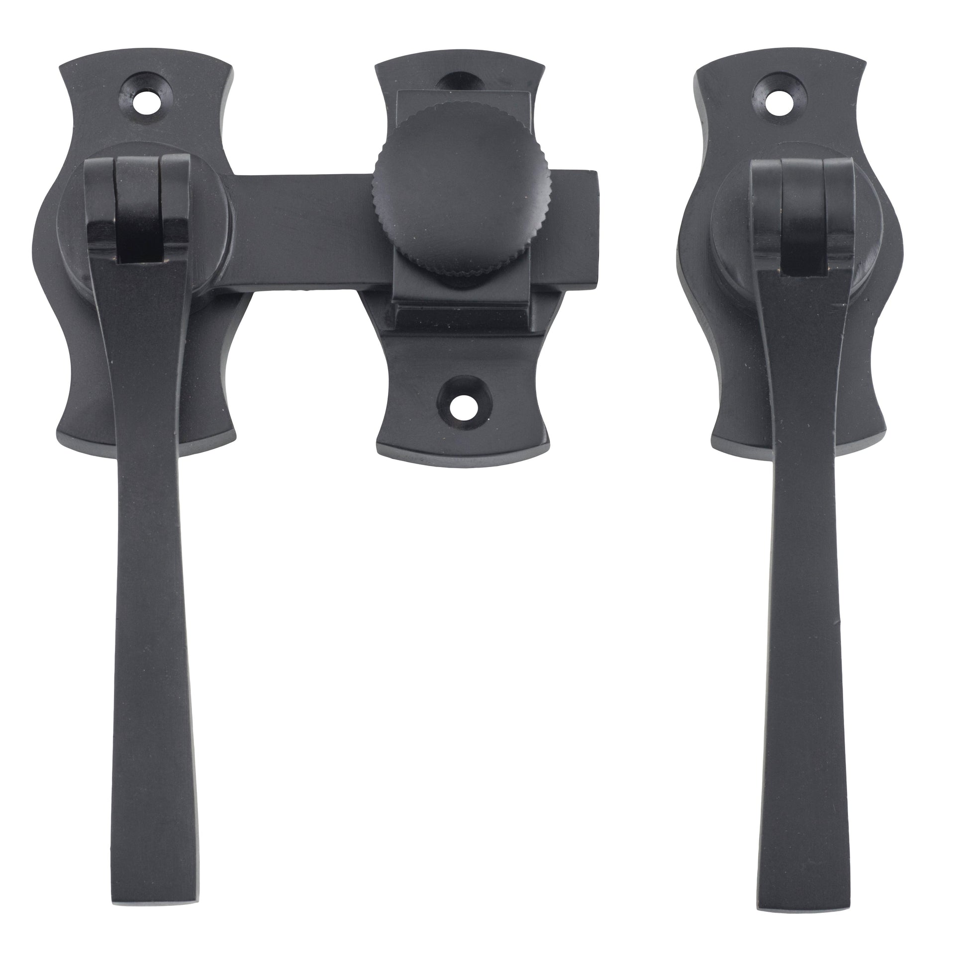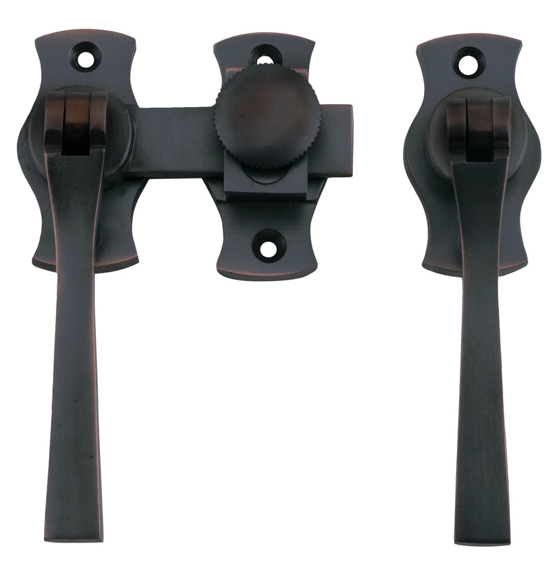 Square French door fasteners with screw down catch.