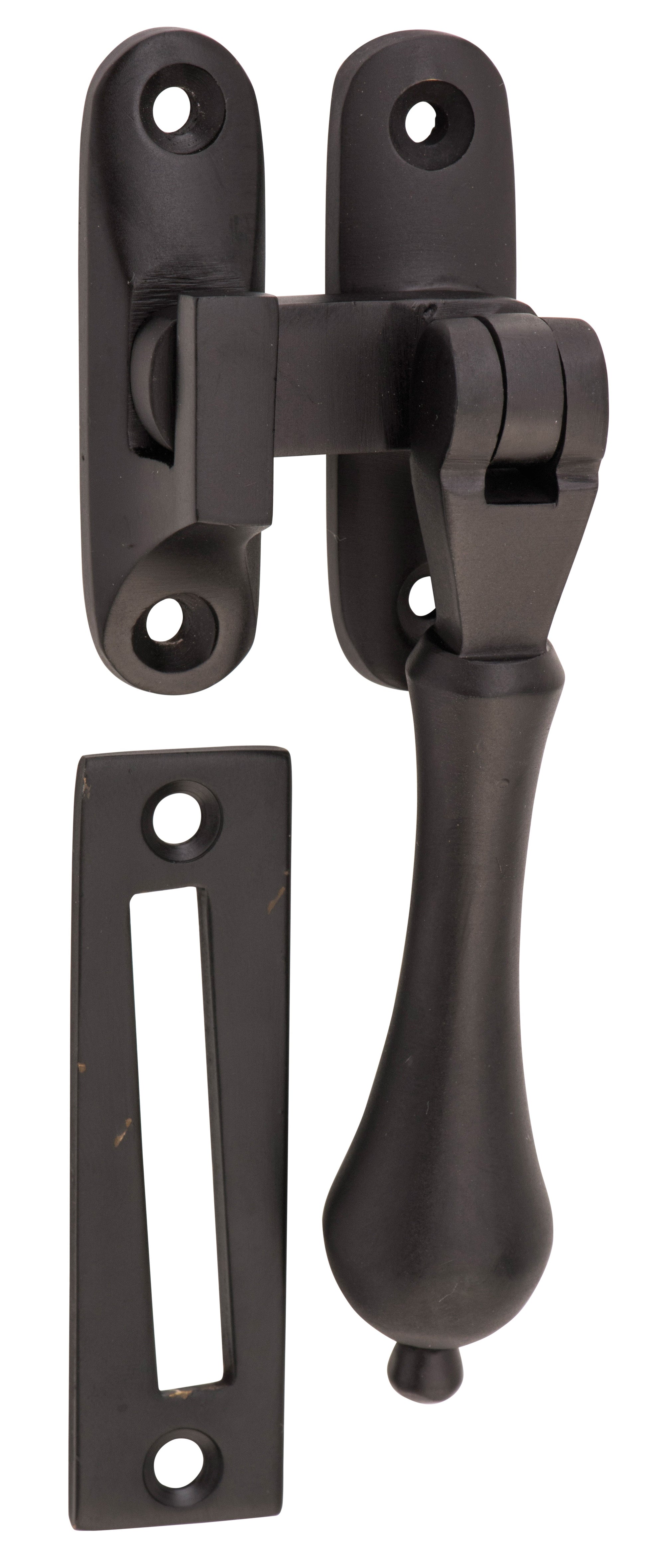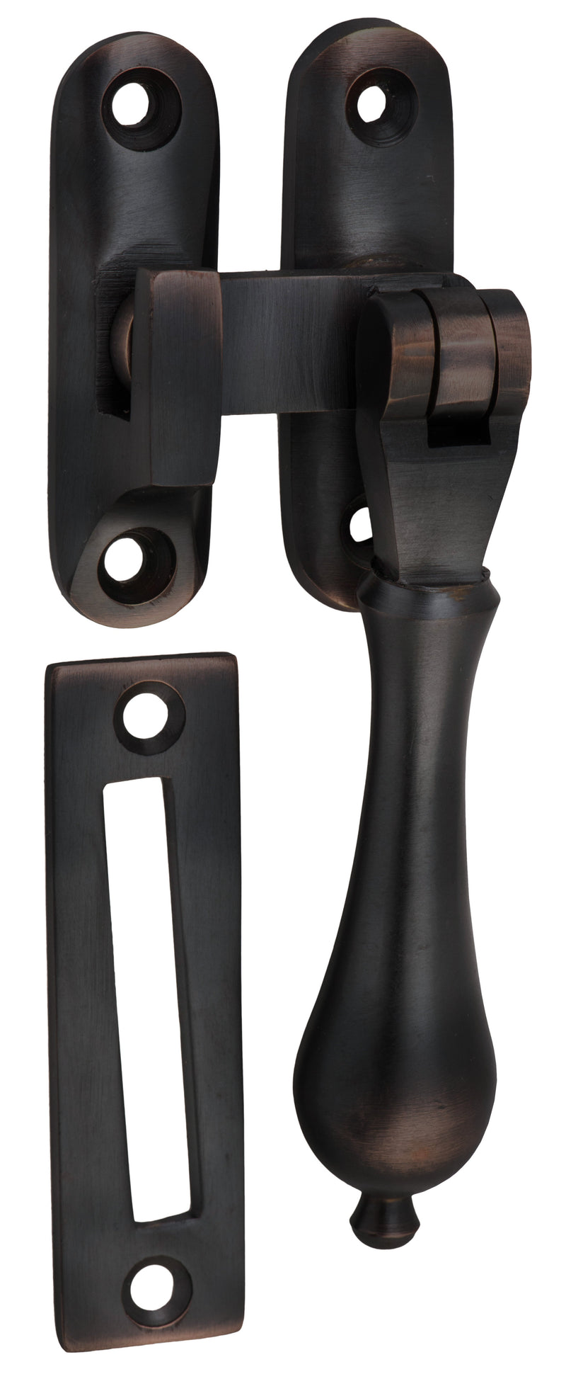 Solid brass teardrop casement fasteners.