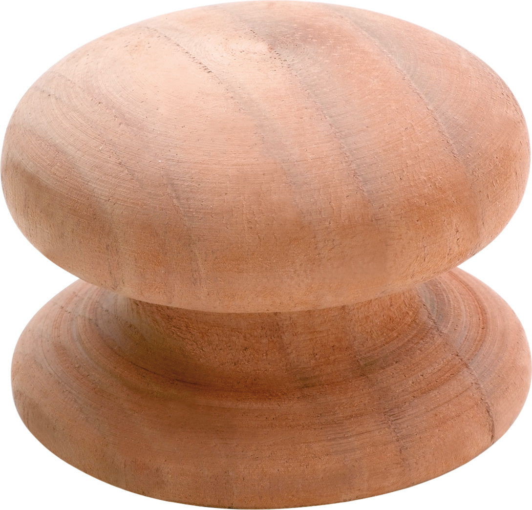 Timber cupboard knob in Pine or Mahogany. Various styles and sizes. Wood screw or dowel fixing.