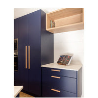 Description: Castella Tullah Cabinet Pull Handle Cabinet Pull Handles are used as a handling feature for opening and closing cabinet doors or drawers. (e.g. Usually used but not limited on kitchen cabinets and drawers, pantries, dressers, and many other small storage) Cabinet Pull Handle Function - Facilitates the operation of cabinet doors and drawer by gripping the pull handle before pulling it to open or close the cabinet door or drawer. Features: Minimal and stylish featuring round tapered edges and textural timber grains Timeless option that would suit any cabinetry design