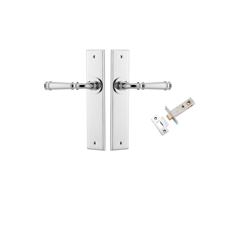 Kit Content: 2 x Verona Levers on Chamfered Backplate in Signature Brass 1 x Tube Latch Split Cam Backset 60mm 1 x Face Plate 1 x Striker Plate 15 x Screws 1 x Standard Spindle 2 x Sprung Spindles 2 x Tie Bolts 1 x Dust Box 1 x Drill Template 1 x Instruction Manual Material: Solid Brass